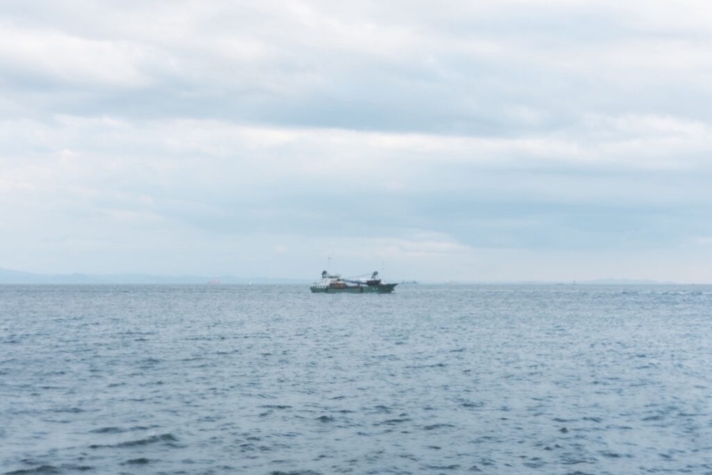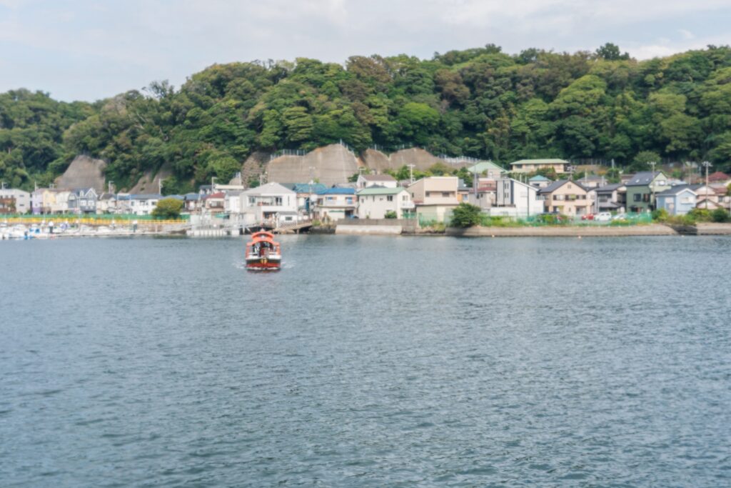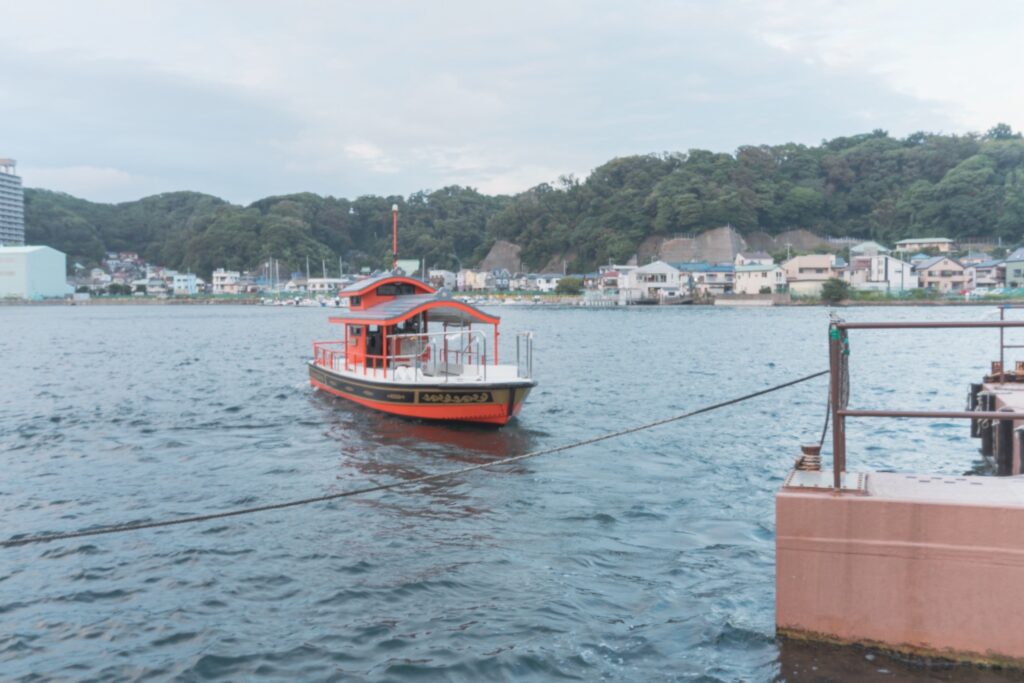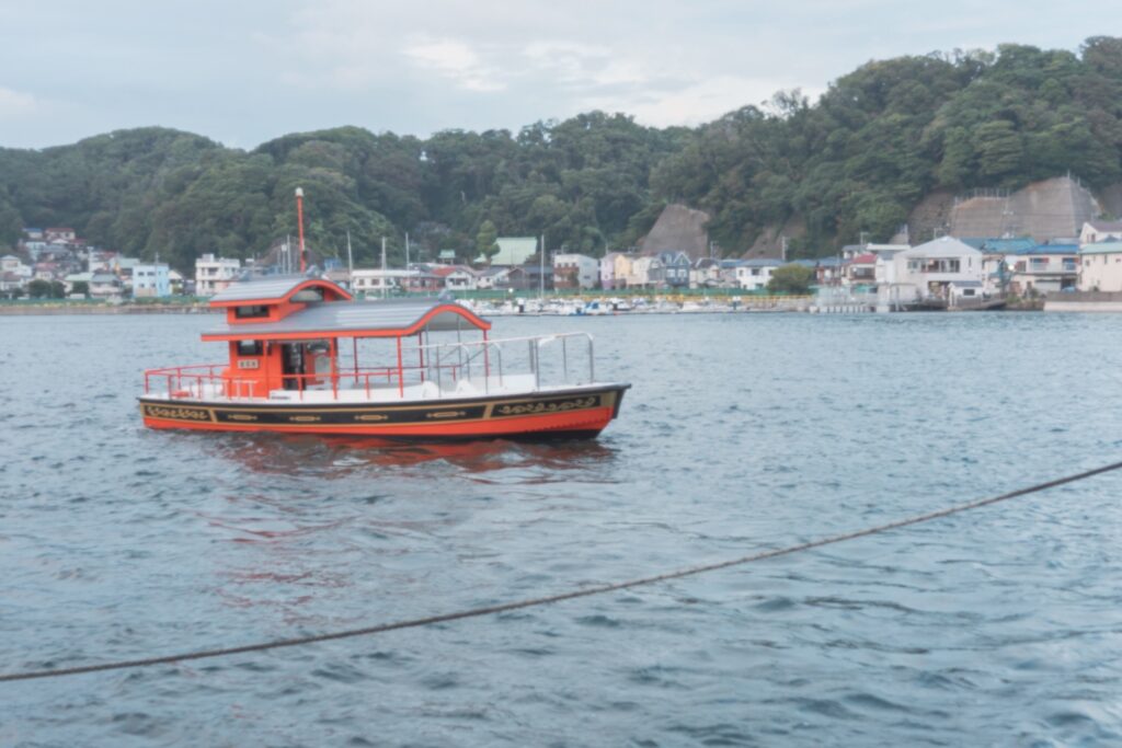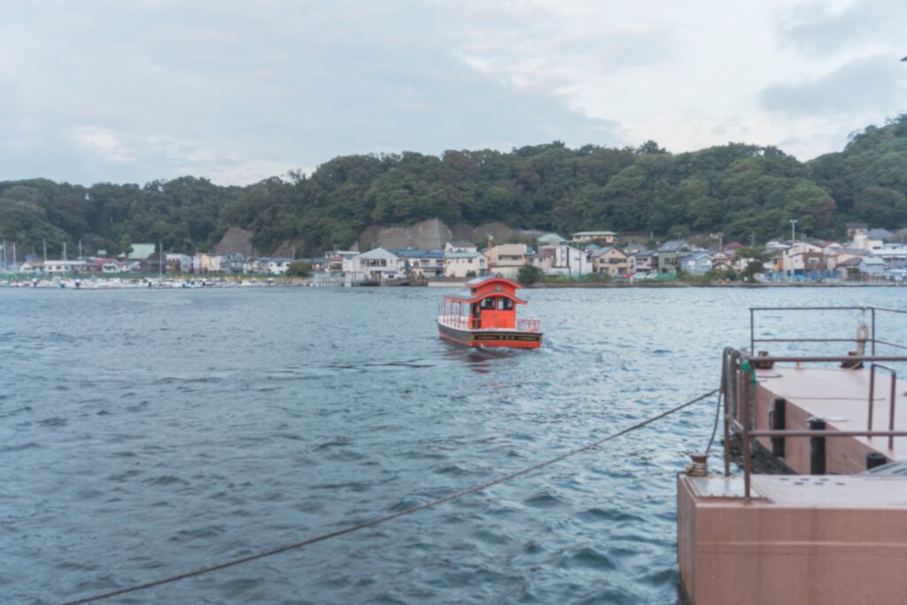 穏やかに対岸まで送り届けてくれる赤い船は、