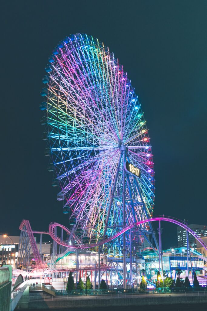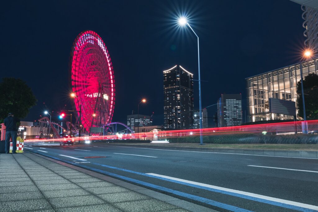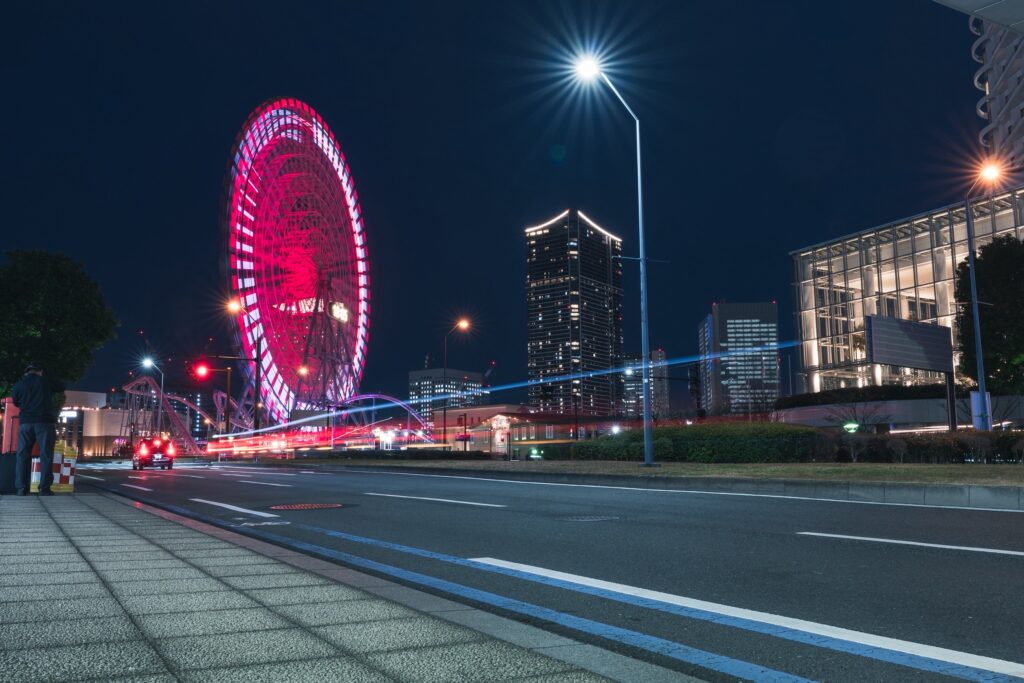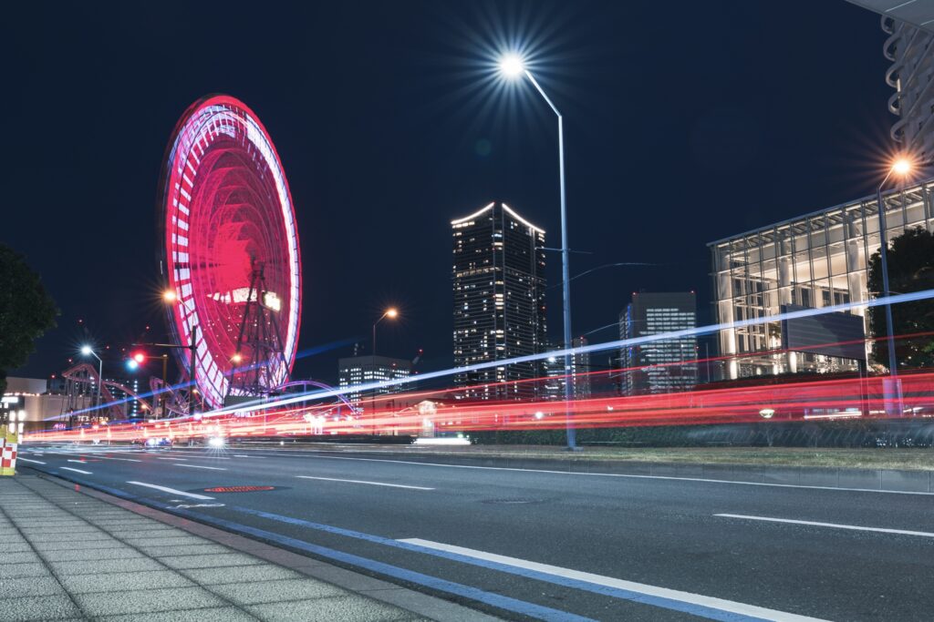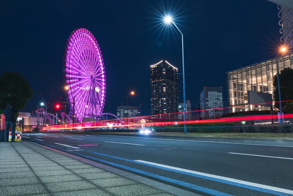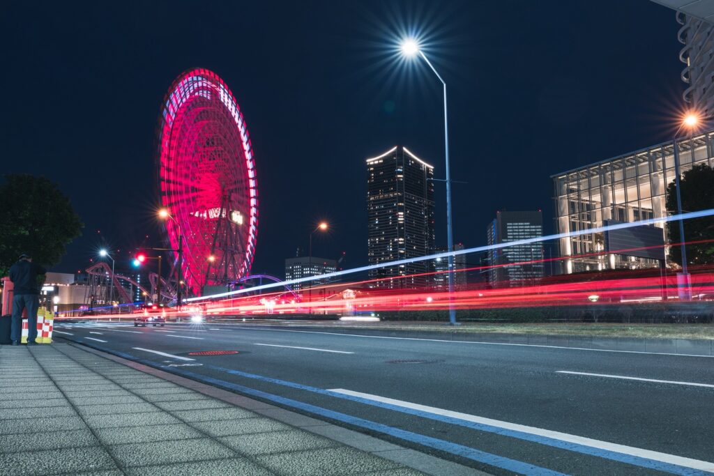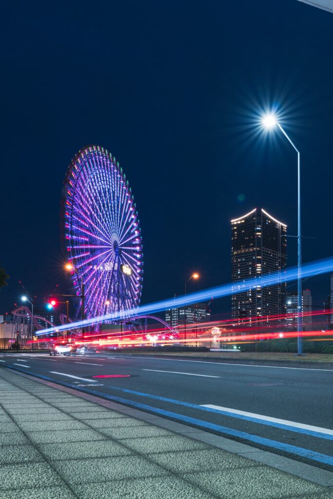 長時間露光で光の軌跡を撮る(よこはまコスモワールド)